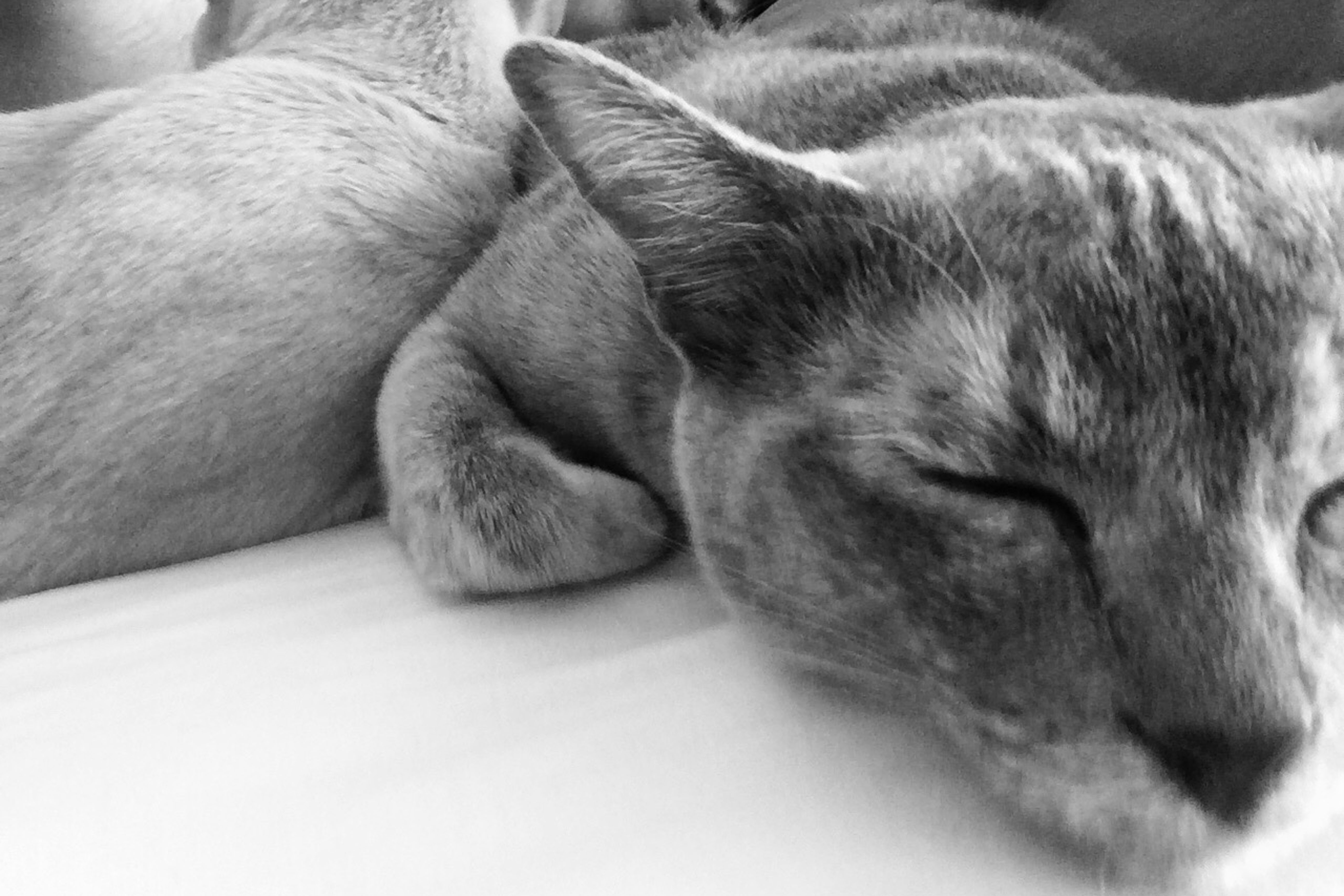 Milo has also incorporated the spoon into his play routines with the cats. He grabs big fists of fur with one hand while playing rhythmically on Huckleberry’s back with the spoon. Needless to say the cats are not in love with the spoon.