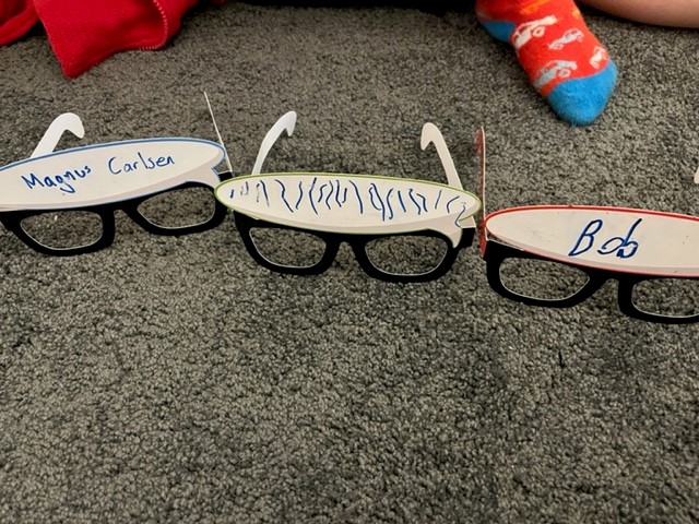 Anyway, simple game. Everybody dons a pair of annoyingly ill-fitting cardboard spectacles. The other players then write the name of a famous something-or-other in non-permanent ink on the white part at the front of the spectacles. Actually, they probably do this before you put them on, that makes more sense. From there each player asks a series of increasingly pointed questions until they deduce the something-or-other written on the front of their spectacles, or they don’t… nobody seems to care one way or the other.
