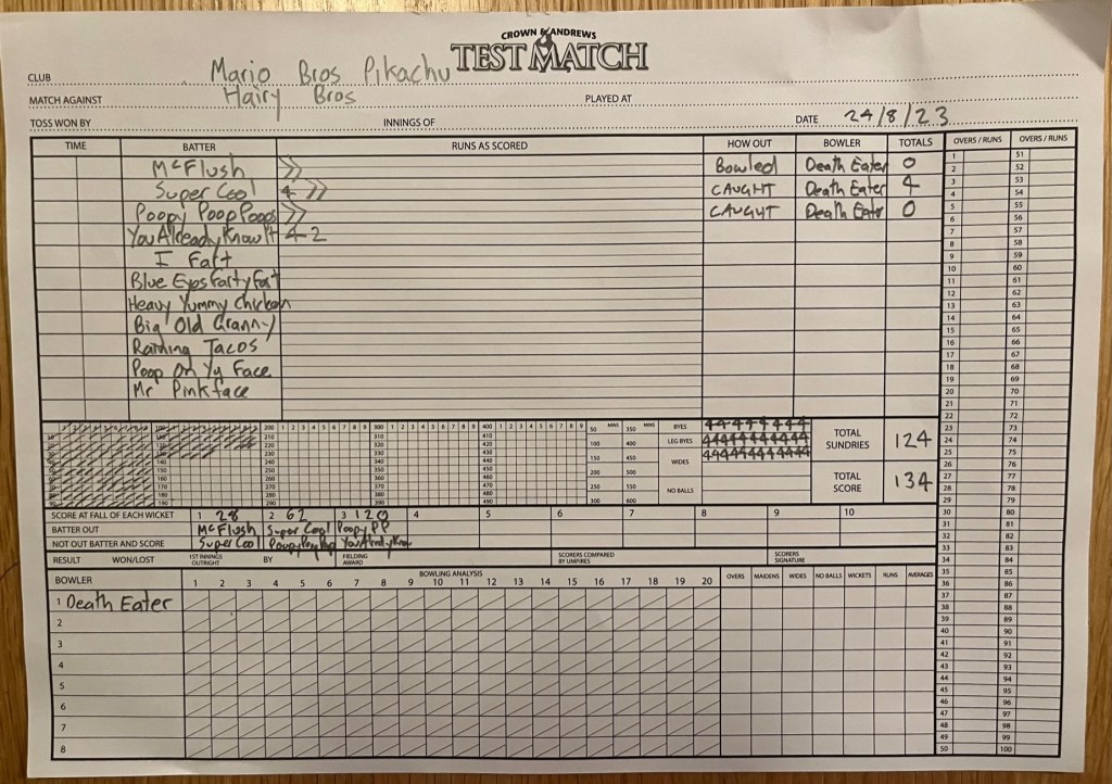 And that’s it, the entire game. Absolute proof that the Crown & Andrews boardgame Test Match Cricket has never been completed in its 40 year history. And perhaps proof that games don’t really need an objective or purpose, much like the real life ‘sport’ from which this game drew its inspiration.