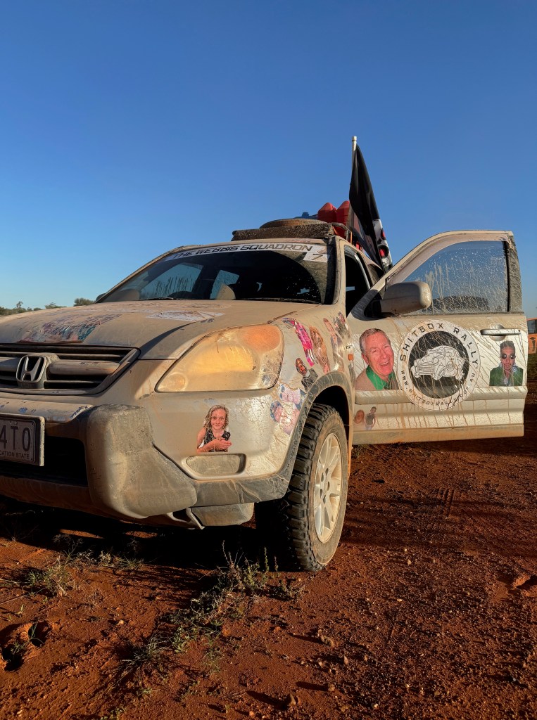 Our car was an ochre-coloured, muddy mess, and completely drained of washer fluids, after the gravelly beating of the previous evening. Being the experienced outback adventurers that we are, we recognised fluids and some measure of windscreen visibility might be useful, so we set about rectifying the situation.
