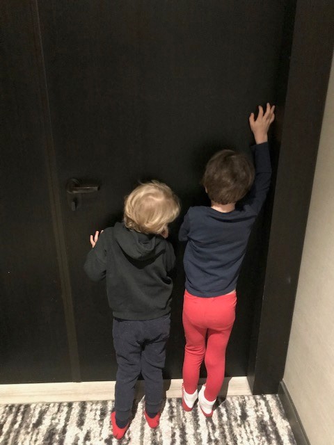 There was no trolley so we dragged our suitcases and children through this non-clapping honour guard of mortuary technicians and part-time welders until we were safely sealed in the lift.