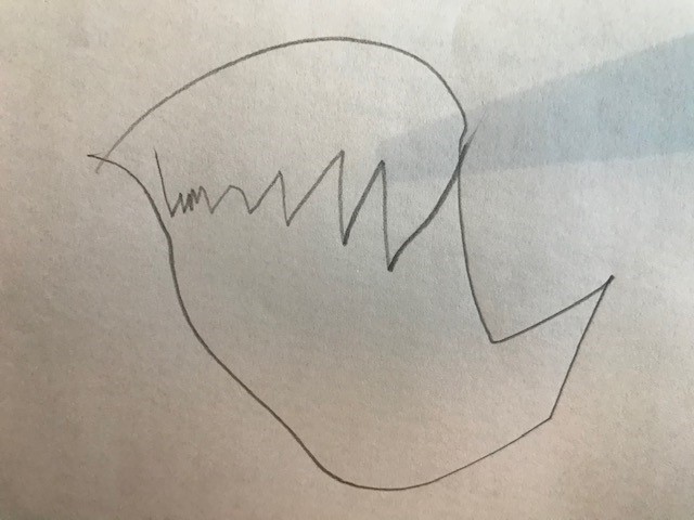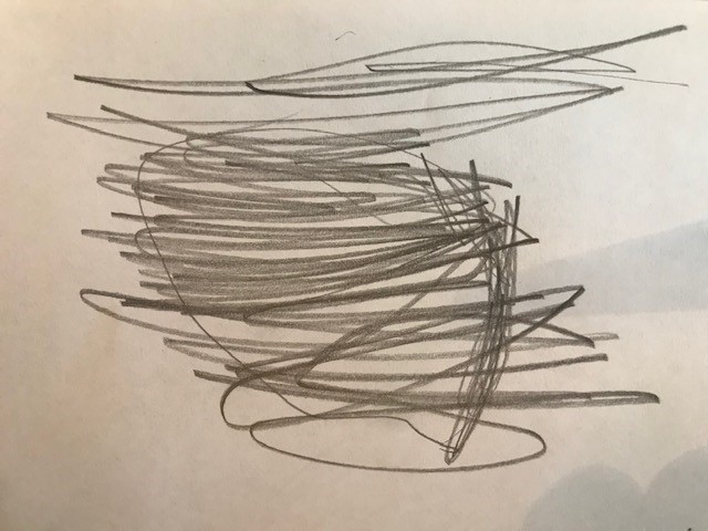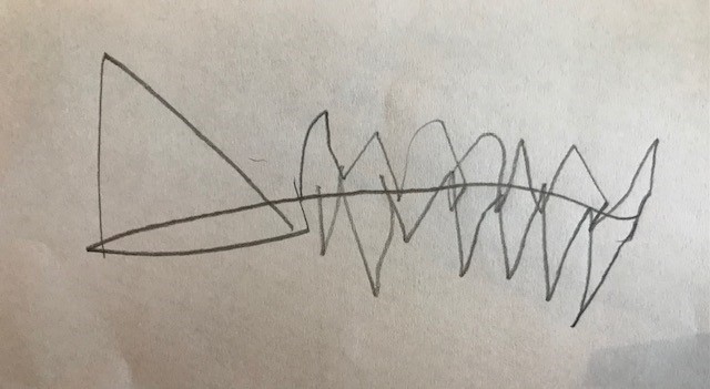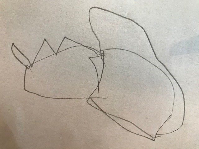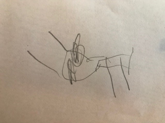 When it’s Monty’s turn he does not trouble himself with a card, he just draws whatever he likes without context or clue and expects me to get it. He let’s me haplessly guess 3 or 4 times, often something like this: “ostrich, ice-cream maker, bassoon”. He replies “nope, nope, nope” then with exasperation “can I tell you?”, which he then proceeds to do.